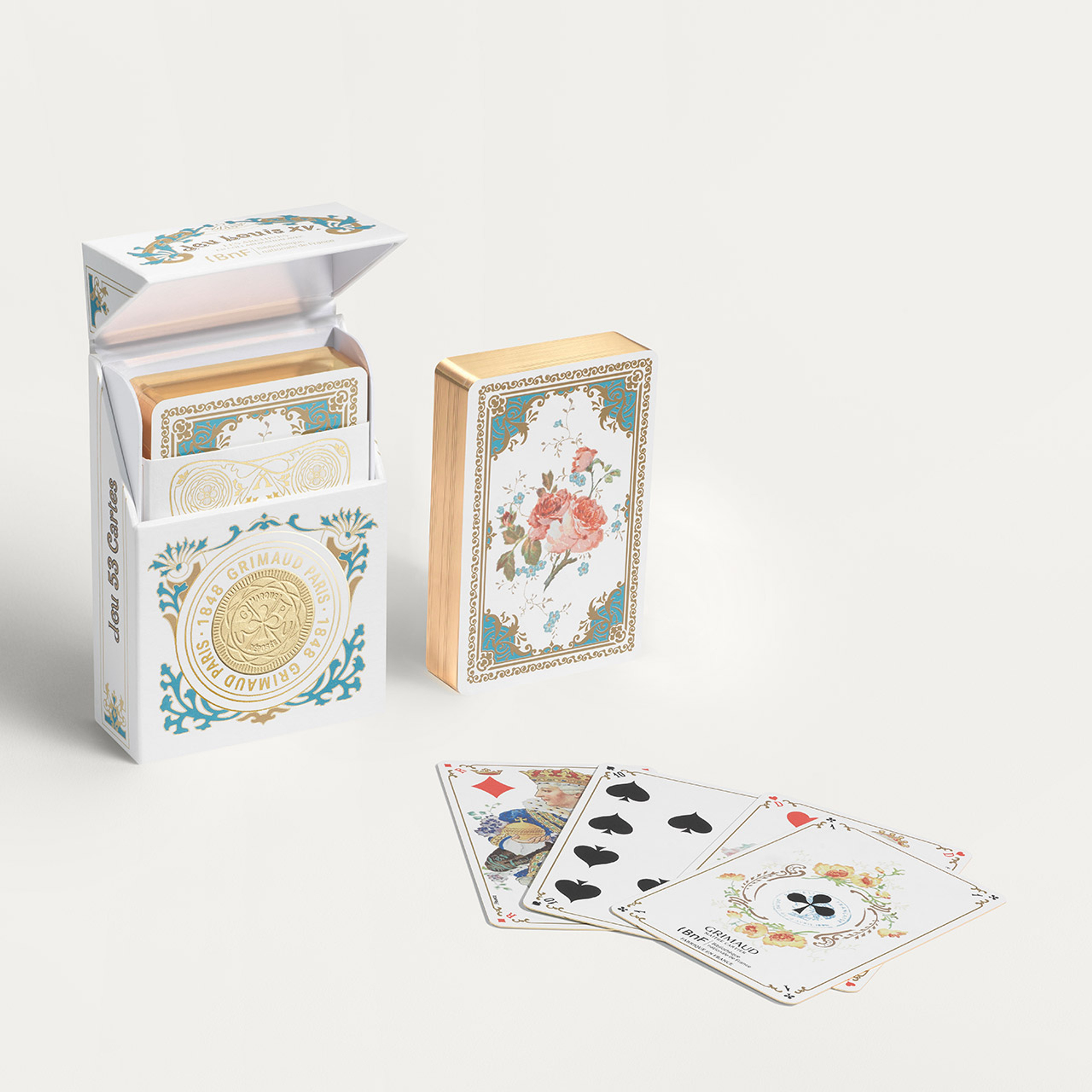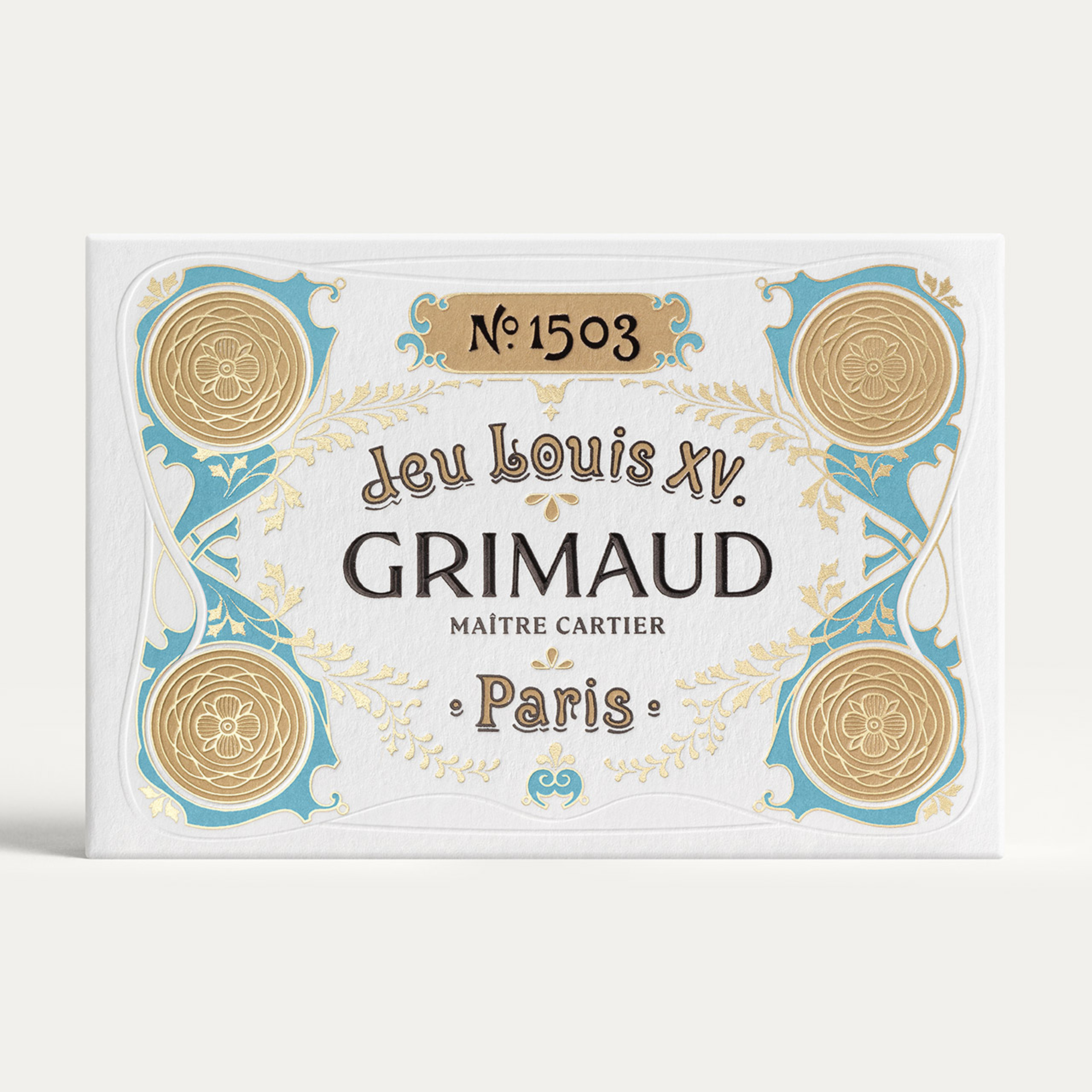 Deck of 53 whist-size cards with French indices Reissue of the historic Grimaud Louis XV deck, in collaboration with the Bibliothèque Nationale de France.