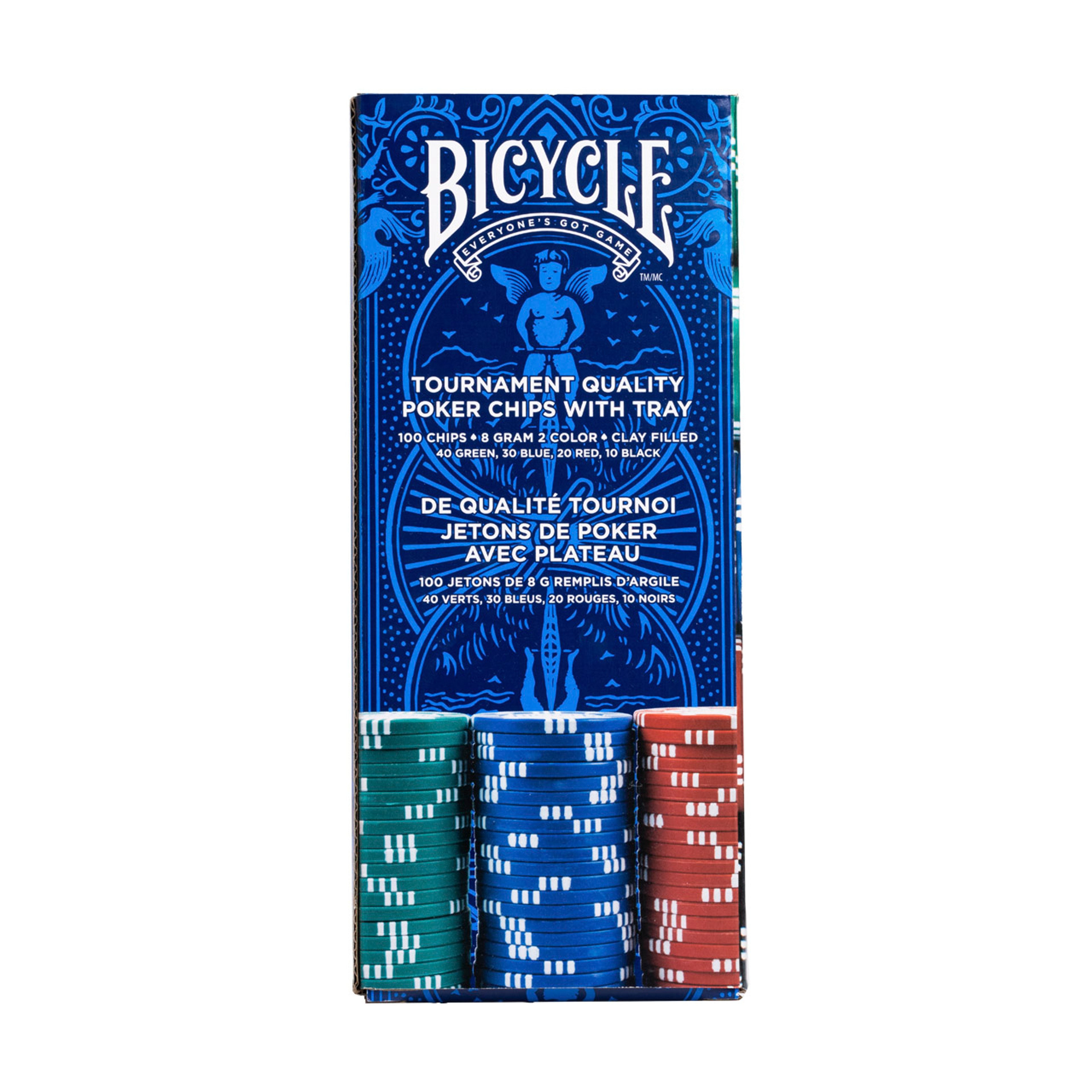 Fichas de póker Premium de 8 gramos de Bicycle. Incluye un total de 100 fichas.