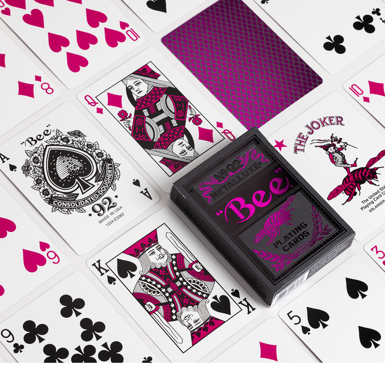 These Bee MetalLuxe Playing Cards are the FIRST Bee Playing cards to use USPCC's MetalLuxe foil back technology. MetalLuxe foil playing cards create a captivating light reflection with luxury finish for a premium playing card experience. Whether you are playing card games like Poker, Blackjack, or Rummy or using these playing cards to perform magic or cardistry moves. Bee MetalluxePlaying Cards are ready to amaze!
