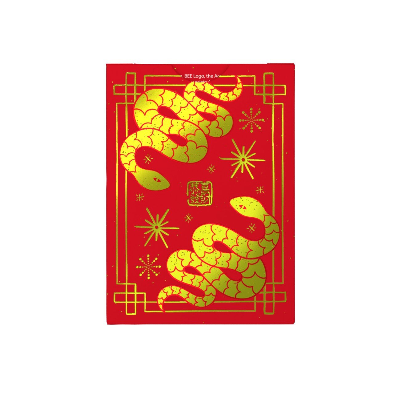 The front features ornate gold-foil snakes coiling elegantly across the design, surrounded by traditional geometric borders and festive starburst motifs. “Gong Xi Fa Cai” (“Wishing You Prosperity”) is proudly displayed above the classic Bee® logo, making this deck a meaningful keepsake as well as a collector’s standout.