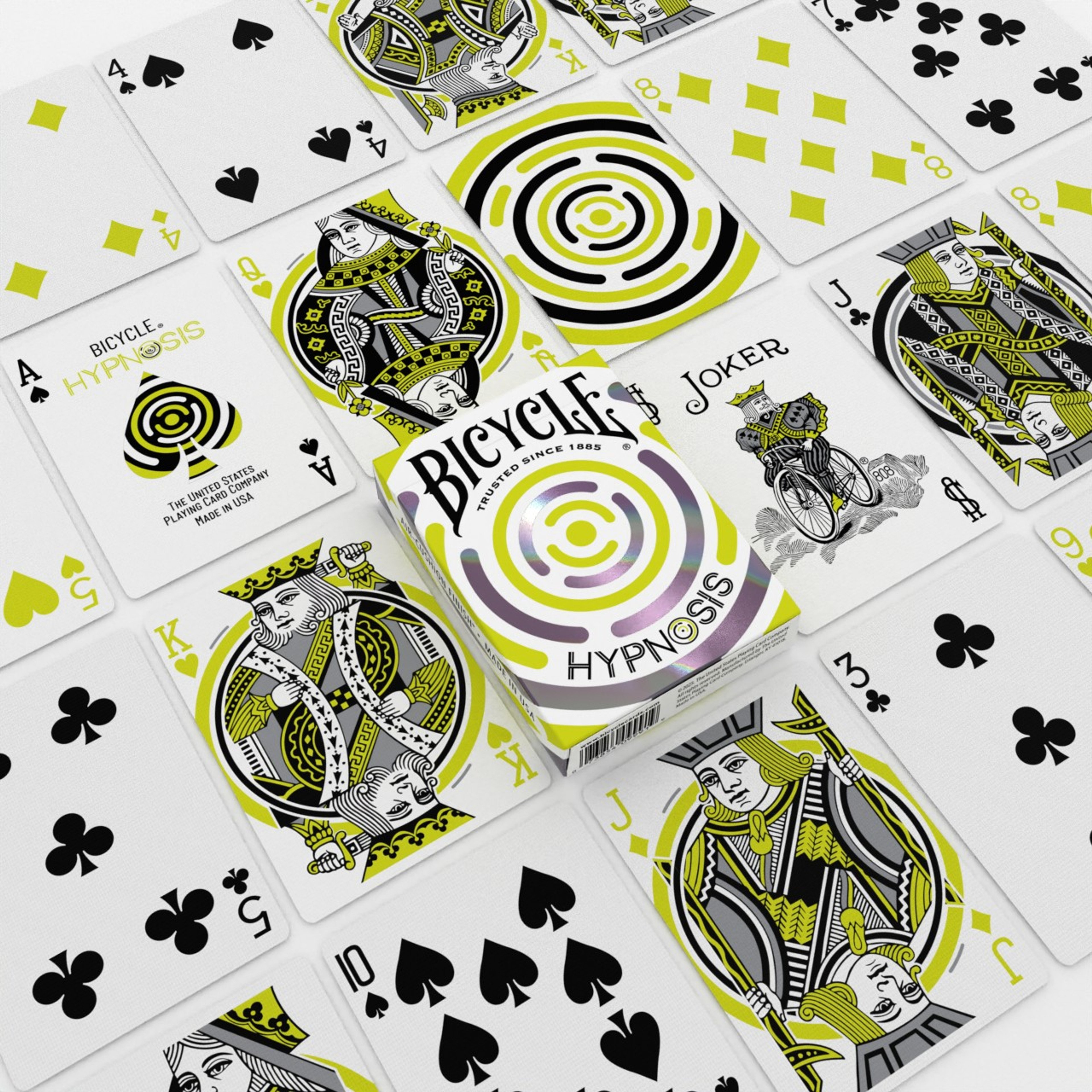 Get ready to mesmerize your audience with every shuffle, flourish, and fan. The Bicycle Hypnosis 2025 Bundle set is designed to captivate, featuring vibrant, swirling patterns that create an optical illusion effect in motion. Printed on classic Bicycle® cardstock with Air-Cushion® Finish, this deck handles smoothly, making it ideal for cardistry, magic, or everyday play.