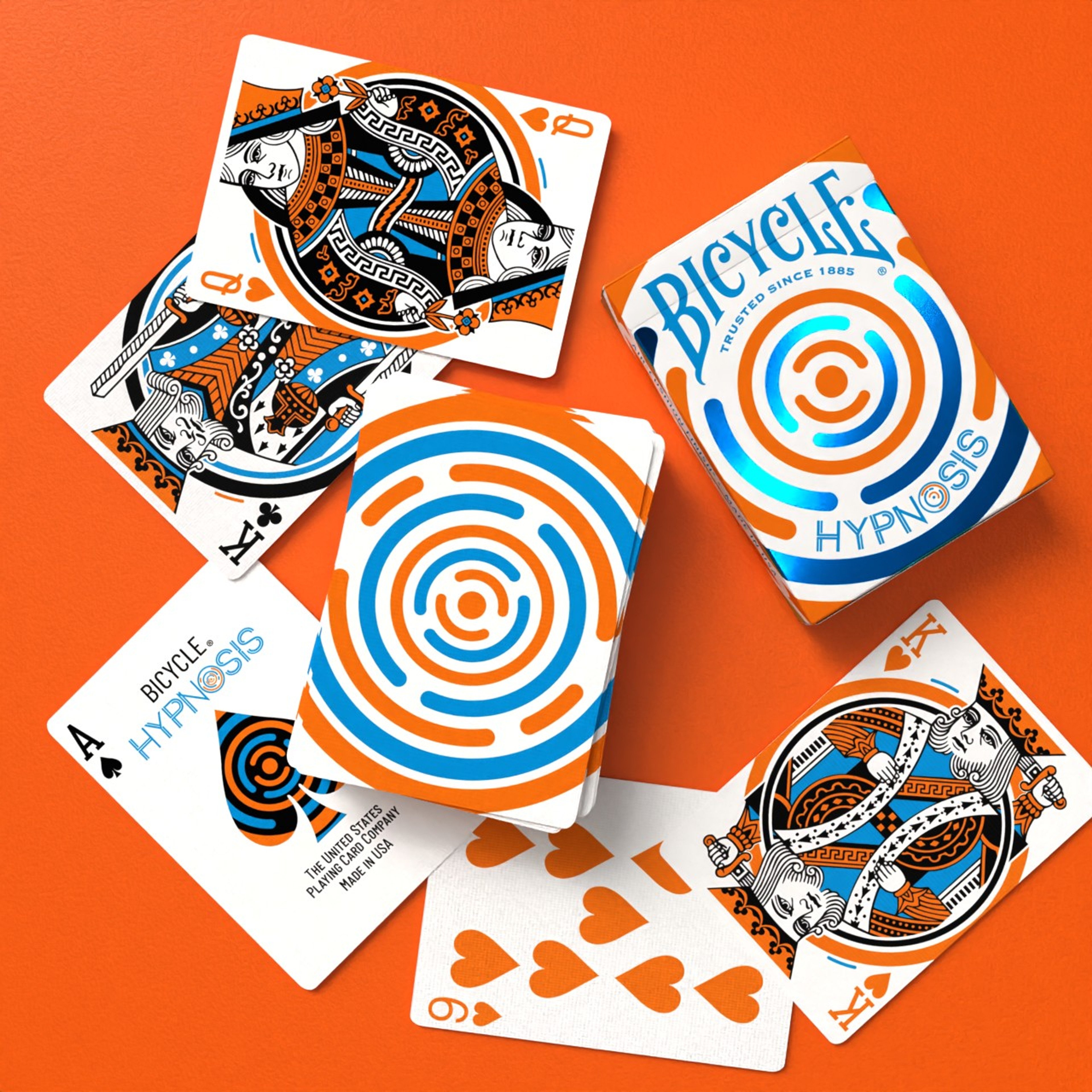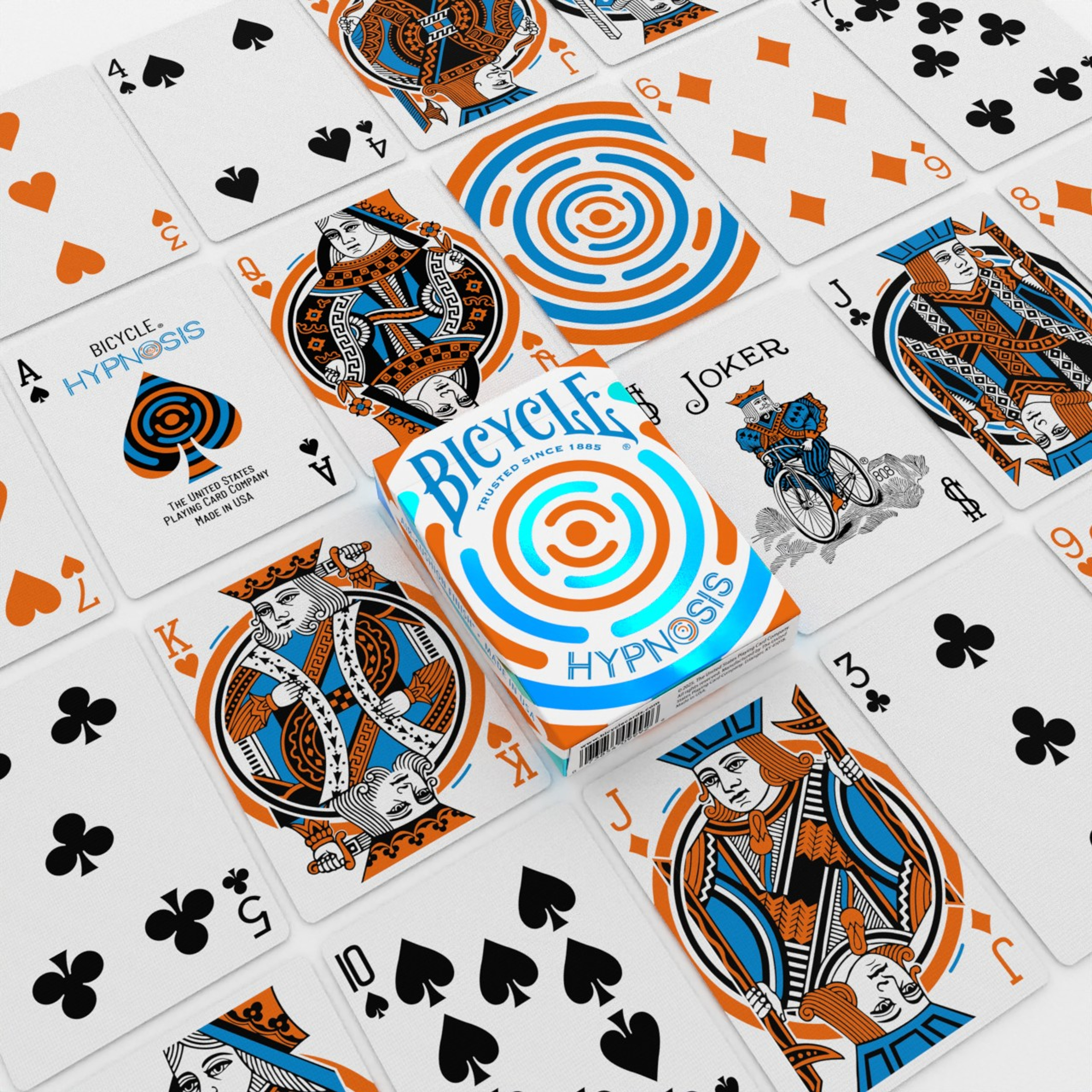 Get ready to mesmerize your audience with every shuffle, flourish, and fan. The Bicycle Hypnosis deck is designed to captivate, featuring vibrant, swirling patterns that create an optical illusion effect in motion. Printed on classic Bicycle® cardstock with Air-Cushion® Finish, this deck handles smoothly, making it ideal for cardistry, magic, or everyday play.
