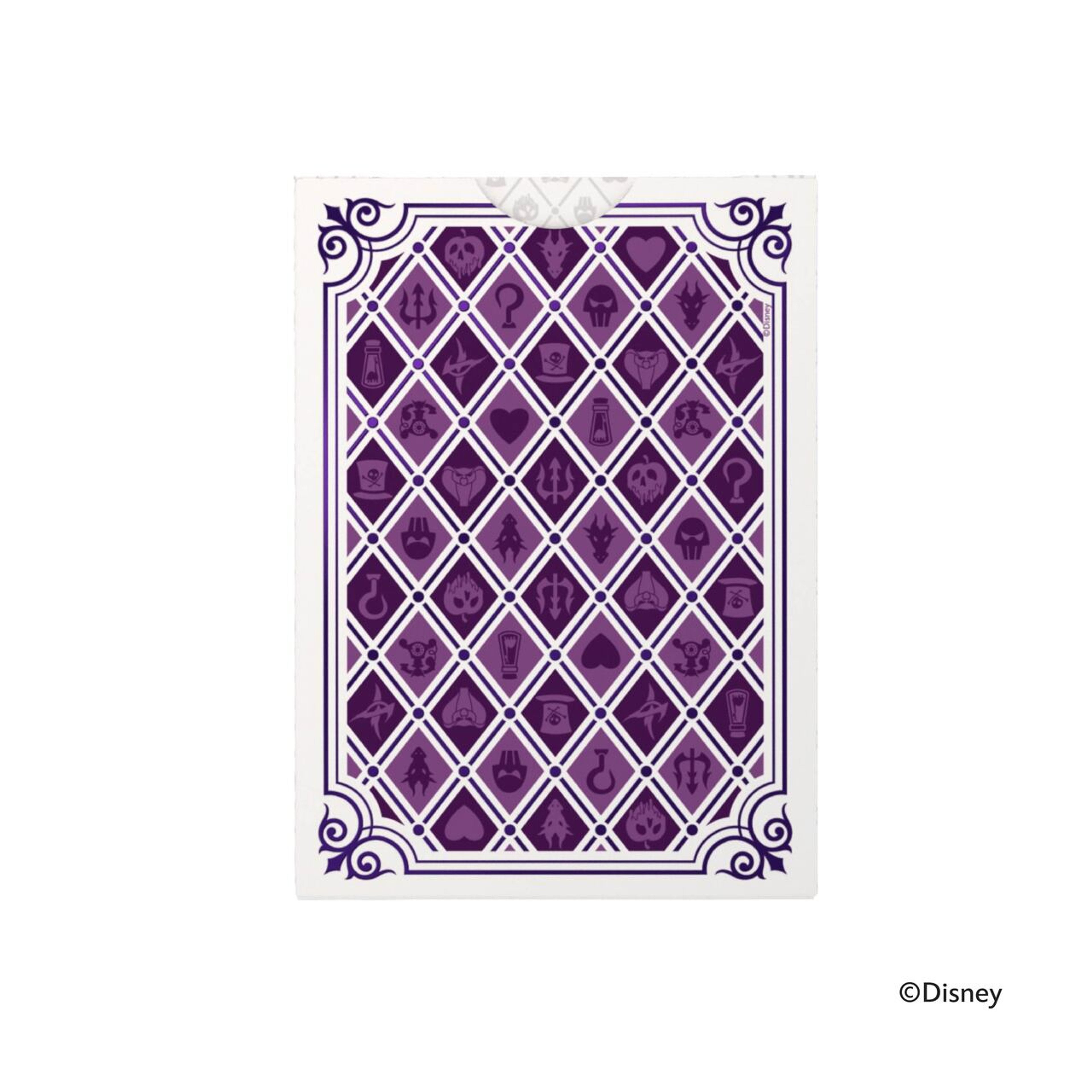 The Disney Villains Playing Cards from our Disney Collection showcase four notable Disney villains on the front, with silver and purple foil accents on the tuck case. The card faces feature court cards with artwork of 12 different Disney Villains.