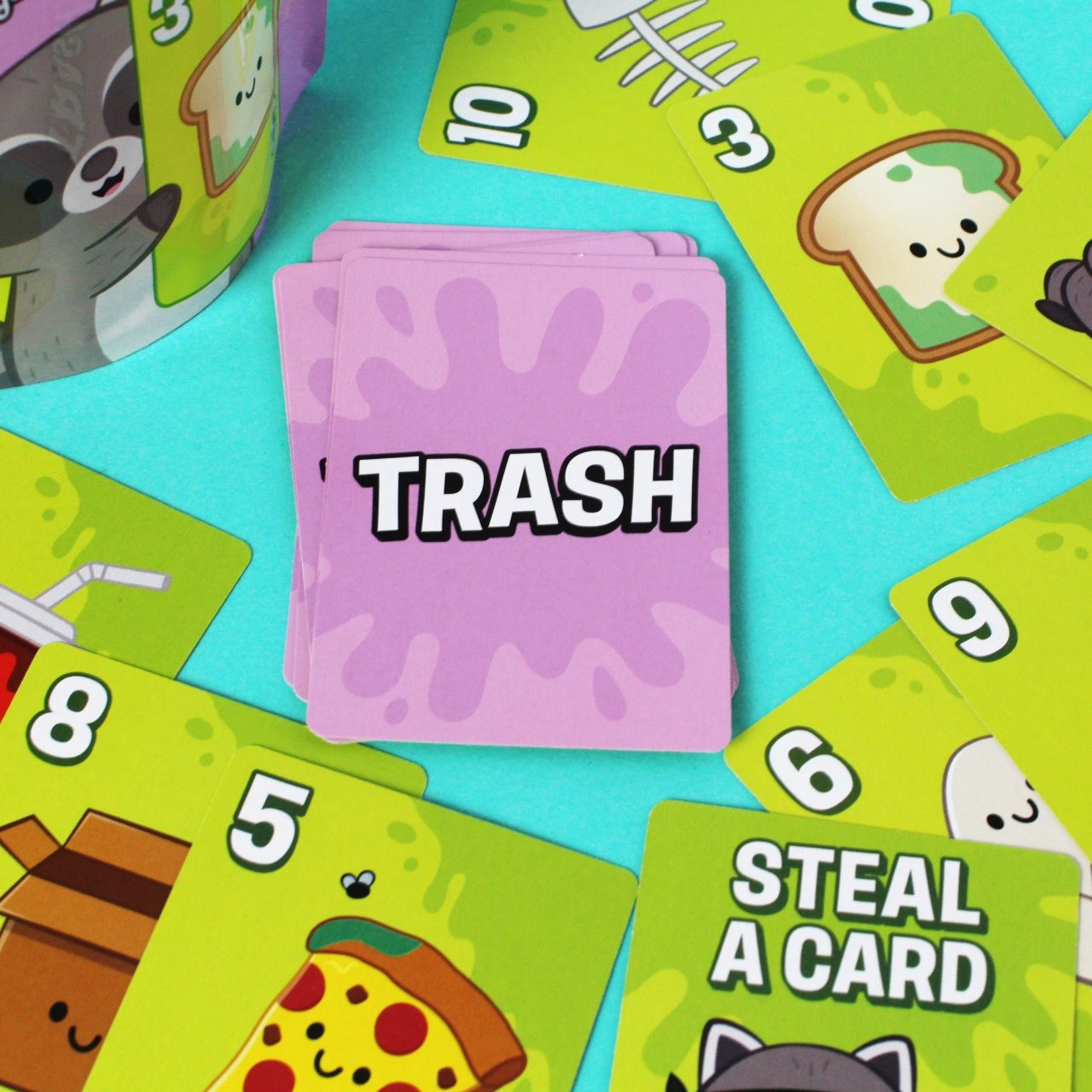 Playful “Trash” Twists: Wild Trash Cans help clean up your grid; Raccoon cards keep everyone laughing when they “dig in” and end a turn.