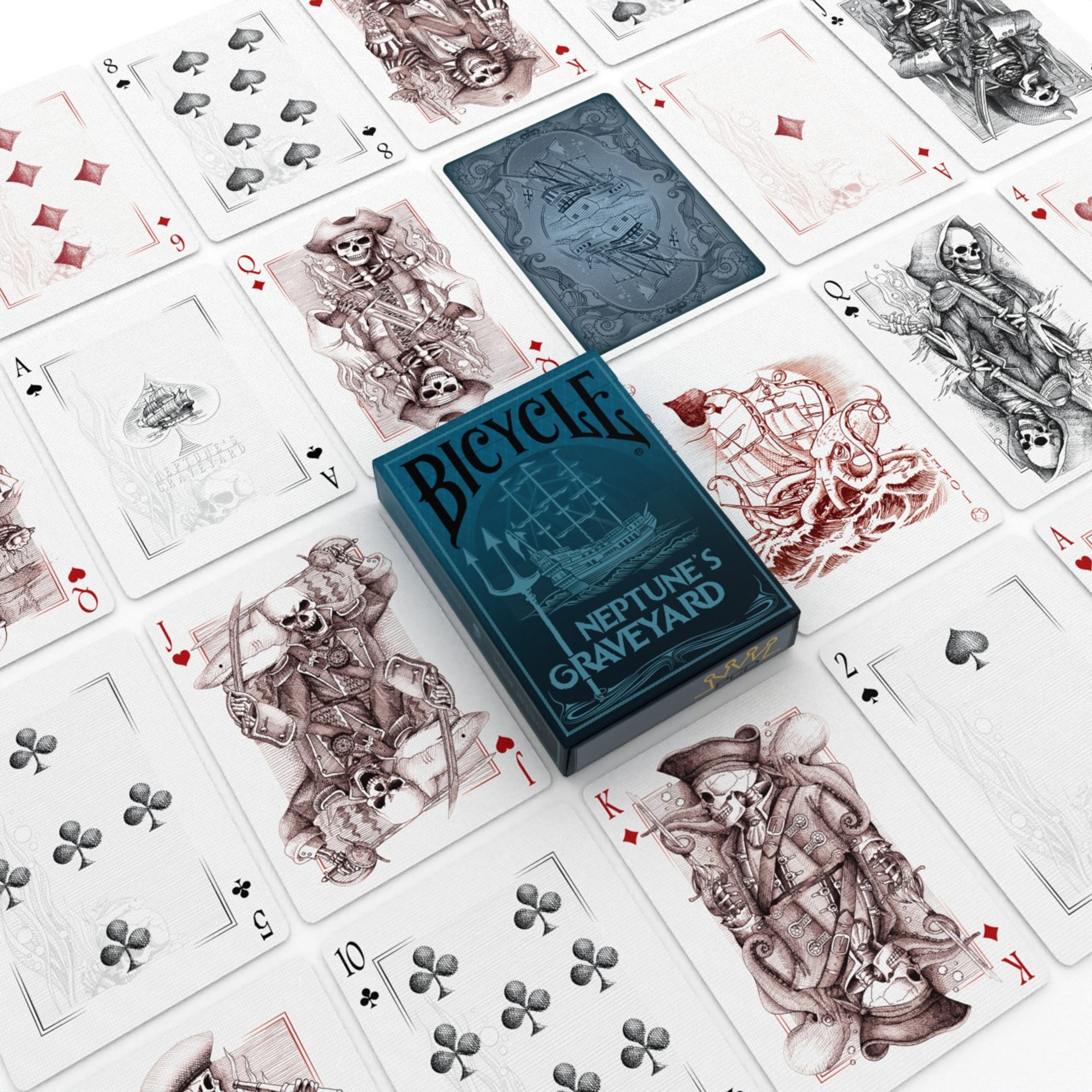 Set sail on a hauntingly beautiful journey beneath the waves with the Spectral Edition of Bicycle’s Neptune’s Graveyard Ships playing cards. This collector-favorite returns with new features and refreshed artwork that bring the ocean's eerie legends to life.